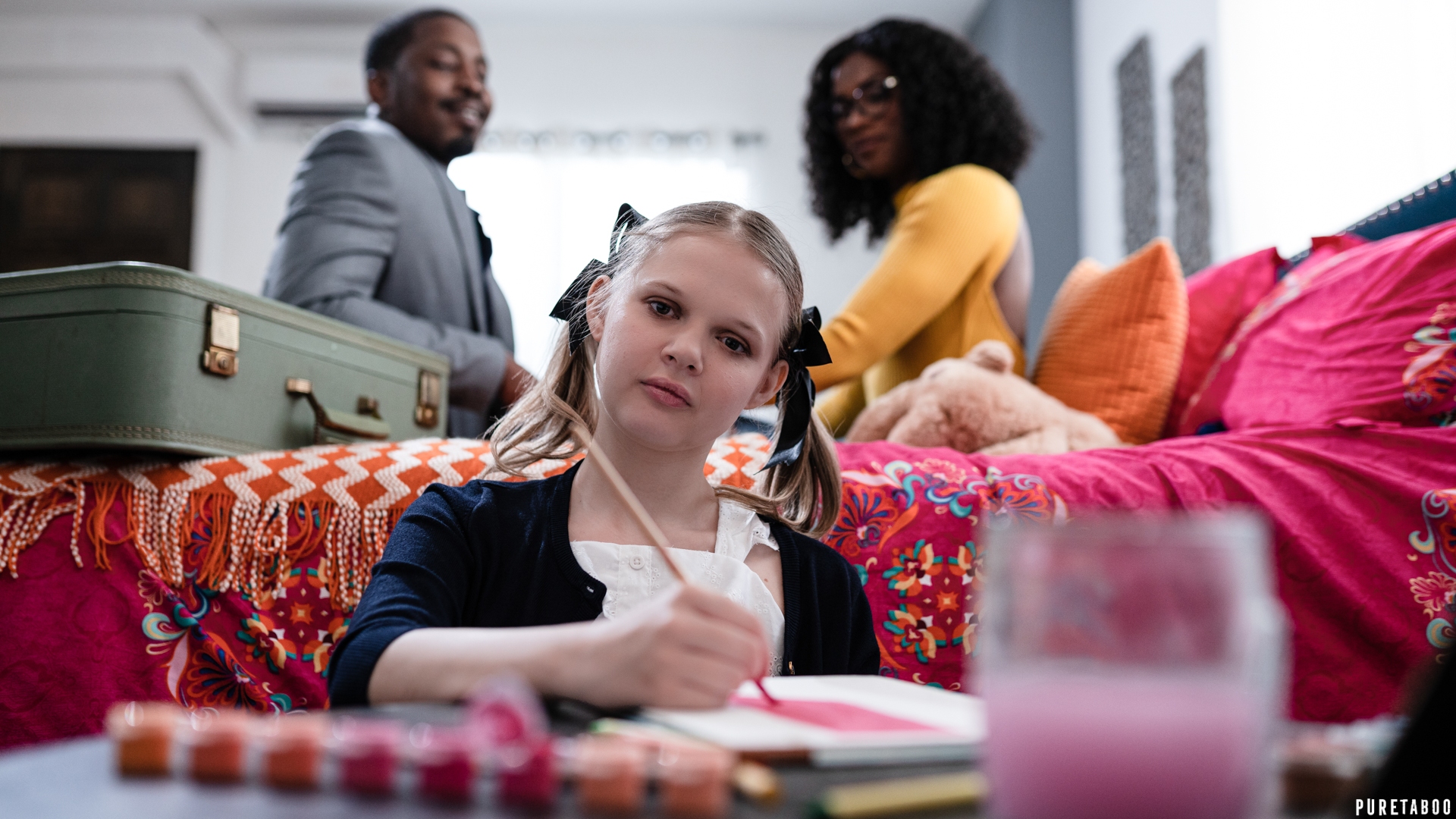 Coco Lovelock has had a troubled past, having been sent from home to home as she's traveled through the merciless foster system. Luckily, she's now stumbled upon a loving husband and wife who have agreed to take her in, Isiah Maxwell and Ana Foxxx. This will be a transitionary home for Coco, a place that she'll be able to use as a jumping-off point for the rest of her life. Ana and Isiah have had struggles of their own, no less. Although they've been trying desperately to conceive for some time now, they just haven't had any luck. That's why they're thrilled to be able to expand their family by letting Coco into their home... as unconventional as it is. But as the days go by, Ana can't help but detect some odd behavior from Coco. She just can't put her finger on it... but there seems to be something wrong with this girl. One day, Ana's worst fears are confirmed when Coco dresses up in some sensual clothes and makes a move on Isiah while Ana's not home. Isiah tries to resist Coco's strange charms but eventually falls victim to her game. They have intense sex, just as Ana learns the horrifying truth of Coco's origins. Will Ana get back home on time to stop what's about to happen, or will she be too late?
