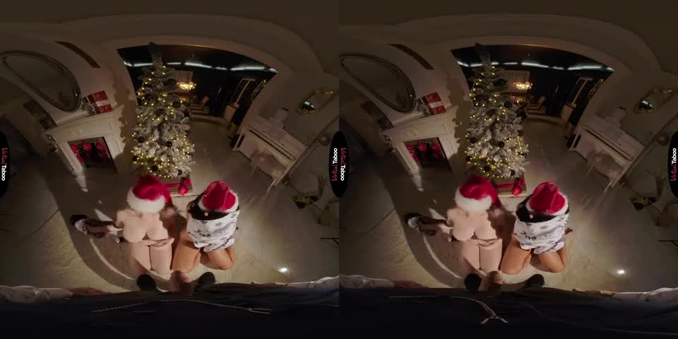 After a long year of disappointment, Kaisa Nord and Scarlett Jones are looking forward to a wonderful holiday celebration. In this VR porn scene, they get bad news when their mother informs them that her flight has been cancelled and she will not be able to return from her business trip in time for Christmas. Instead, the girls have to spend the holiday with their creepy father. He is dark, weird and they are both a little afraid of him. When they go into the bedroom to tell him that their mother will not be home, the girls get a look at him in the shower. They linger and watch him shower, scurrying away when he looks towards them. Afraid he will be angry when he comes out, the girls wait by the tree until their father joins them. He looks at them sternly, not saying a word but motioning towards his feet. The sisters are intimidated to his strength and kneel before their father as he pulls out his cock. Drawn to his dark dominance, they take turns sucking and stroking him. They can feel his power over them as he orders them to strip and get on the floor. The stunning picture of High Definition Virtual Reality puts you right in the action through your VR Headset. Scarlett is first, bending over while Kaisa holds her open to allow their father to fuck her tight pussy. He takes control and fucks both teens any way he wants, driving his dick deep and hard. They have never been controlled by a man this way and find themselves unable to resist his sexual charisma. He has them both cumming on his cock and begging to suck the load out of his big cock. By the time he puts them to bed, the girls are completely under his control and can’t wait for more.